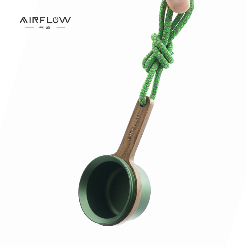 This spoon makes dosing effortless. One scoop provides 12g—eliminating the need for scales during your quick morning ritual. The ergonomic curve feels intuitive, and the hand-polished walnut brings a tactile warmth to your coffee station. Whether stored inside a bean canister or used for deep-bag access, it adapts to your workflow. Every unit includes a 500mm fluorescent hanging rope for convenient nearby storage. Available in Silver, Dark Green, and Black, it complements any aesthetic while the laser-etched branding ensures you are using a genuine Airflow precision tool.