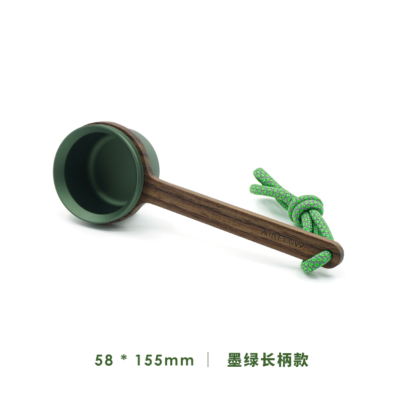 This spoon makes dosing effortless. One scoop provides 12g—eliminating the need for scales during your quick morning ritual. The ergonomic curve feels intuitive, and the hand-polished walnut brings a tactile warmth to your coffee station. Whether stored inside a bean canister or used for deep-bag access, it adapts to your workflow. Every unit includes a 500mm fluorescent hanging rope for convenient nearby storage. Available in Silver, Dark Green, and Black, it complements any aesthetic while the laser-etched branding ensures you are using a genuine Airflow precision tool.